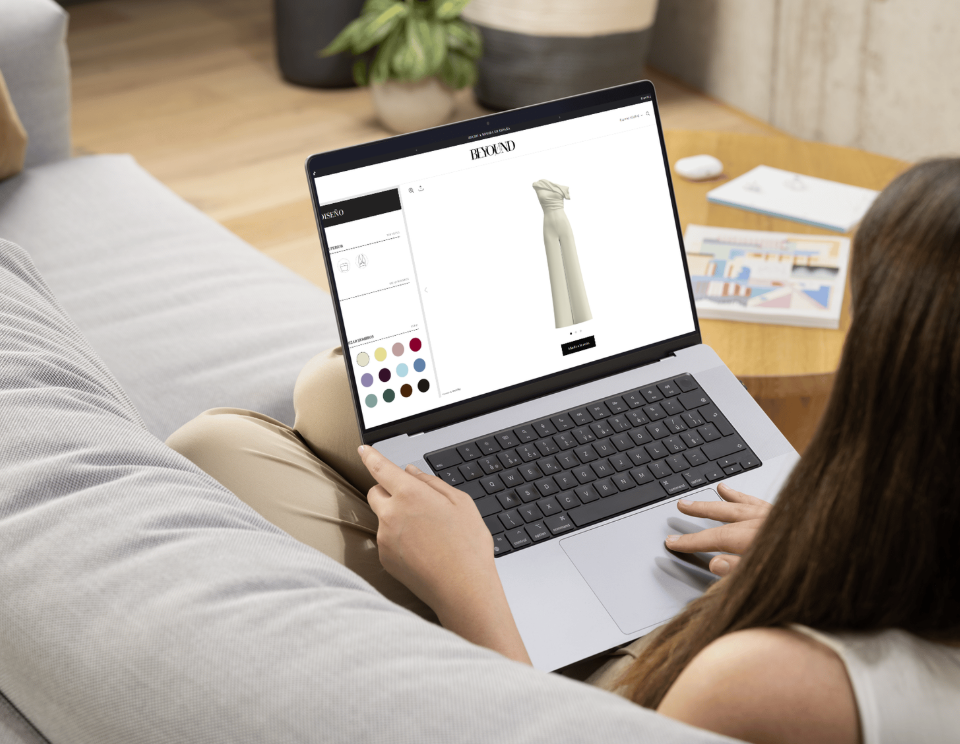 Diseña tu vestido ideal con nuestro configurador interactivo en tiempo real. Visualiza cada cambio al instante mientras seleccionas colores, tejidos y detalles de corte. Una experiencia de personalización sofisticada que te permite crear una prenda única, adaptada completamente a tu visión y estilo personal. Desde el concepto hasta el resultado final, controla cada aspecto de tu creación.