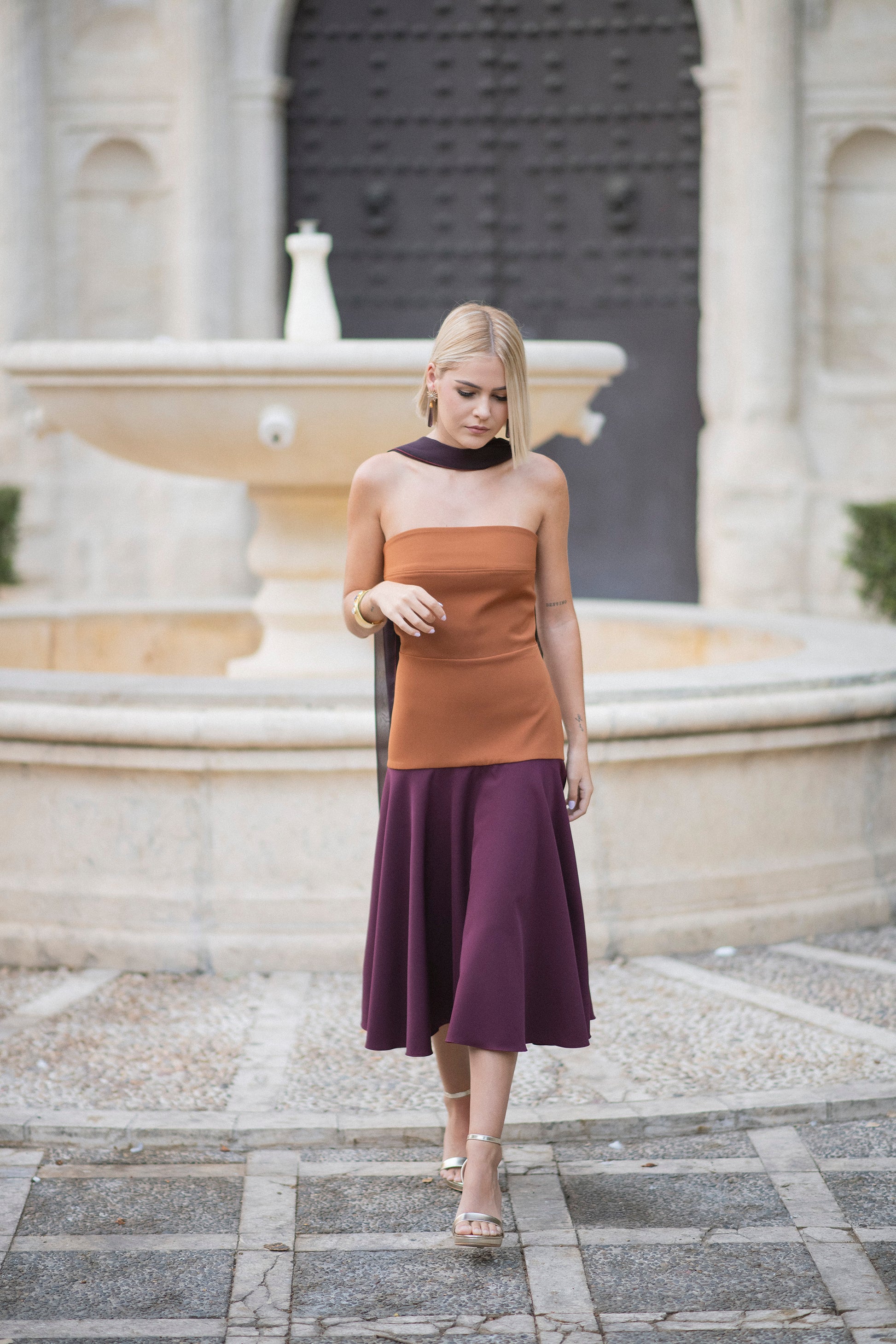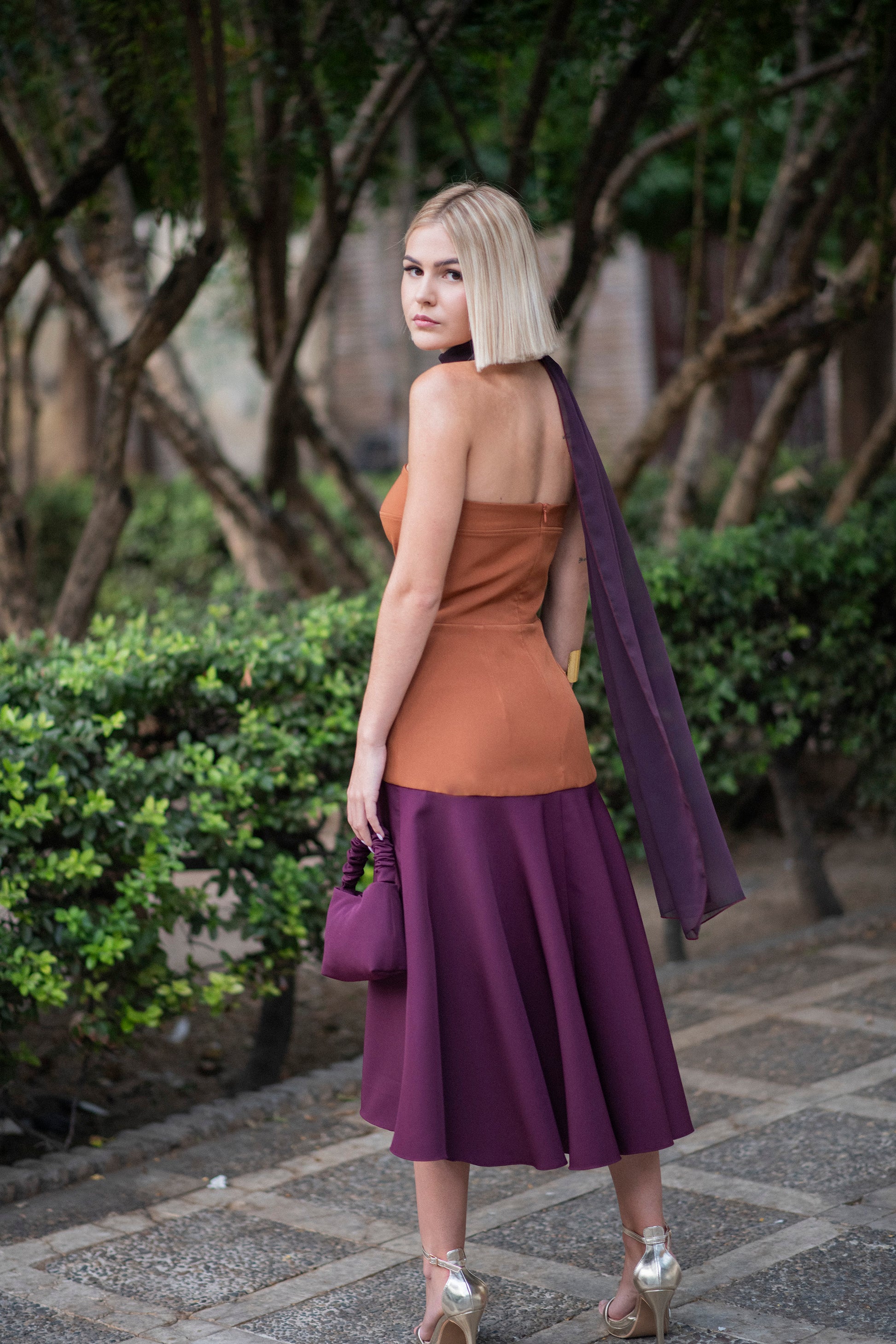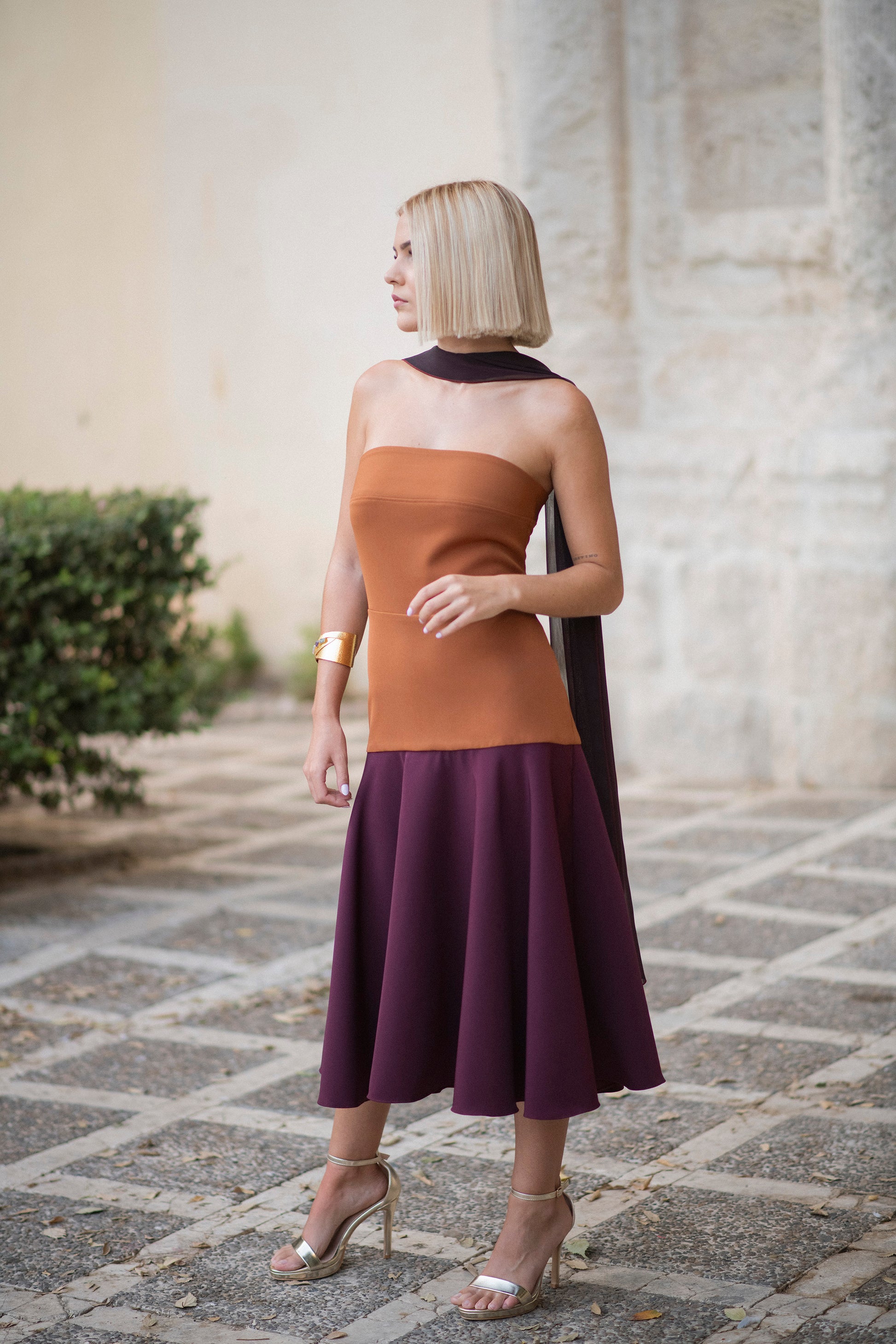 Este vestido VEGA+CARINA, en tonos caldera y burgundy, destaca por su diseño palabra de honor que ajusta hasta la cadera, donde se abre en una elegante falda de capa midi. Su corte favorece la silueta, ofreciendo un estilo sofisticado y moderno. Además, se puede personalizar completamente online, tanto en colores como en cortes, para adaptarse a tus medidas y preferencias, asegurando una prenda exclusiva y a tu medida. Ideal para quienes buscan una combinación de elegancia y comodidad en un solo vestido.